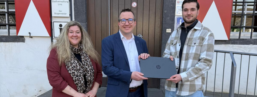Die Mittel wurden für die Ausstattung eines neuen Arbeitsplatzes mit modernem IT-Equipment eingesetzt. Besetzt wird dieser durch den neuen Mitarbeiter Johannes Diedenhofen, der künftig für die Erweiterung der Ferienangebote in den Verbandsgemeineden Linz und Unkel zuständig ist.